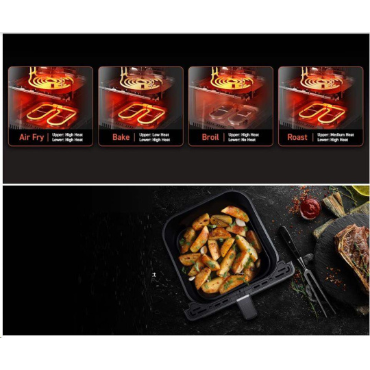 S horkovzdušnou fritézou COSORI CAF-P583S SMART si můžete užít vaše oblíbená smažená jídla bez výčitek, protože na rozdíl od běžného smažení nebo fritování je v této horkovzdušné fritéze možné připravovat jídla za použití velice malého množství oleje nebo vůbec žádného. Patentovaná technologie THERMO IQ 360° HEAT CIRCULATION přesně reguluje teplotu inteligentním teplotním algoritmem a zajišťuje tak rovnoměrně uvařené jídlo bez nutnosti jeho protřepání nebo překlápění. Kombinace cirkulujícího horkého vzduchu, dokonalé teploty vaření a chytrých programů zajistí, že hranolky budou vždy krásně křupavé a kuřecí stehna šťavnatá. Programy si můžete rychle a pohodlně nastavit také přes smartphone nebo Amazon Alexa a Google Assistant. Až budete mít hotovo, čištění bude stejně snadné díky nepřilnavému koši, který lze mýt v myčce. Díky veliké nádobě s objemem 6,4l navíc dokážete rychle navařit i pro větší rodinu nebo skupinu hostů.