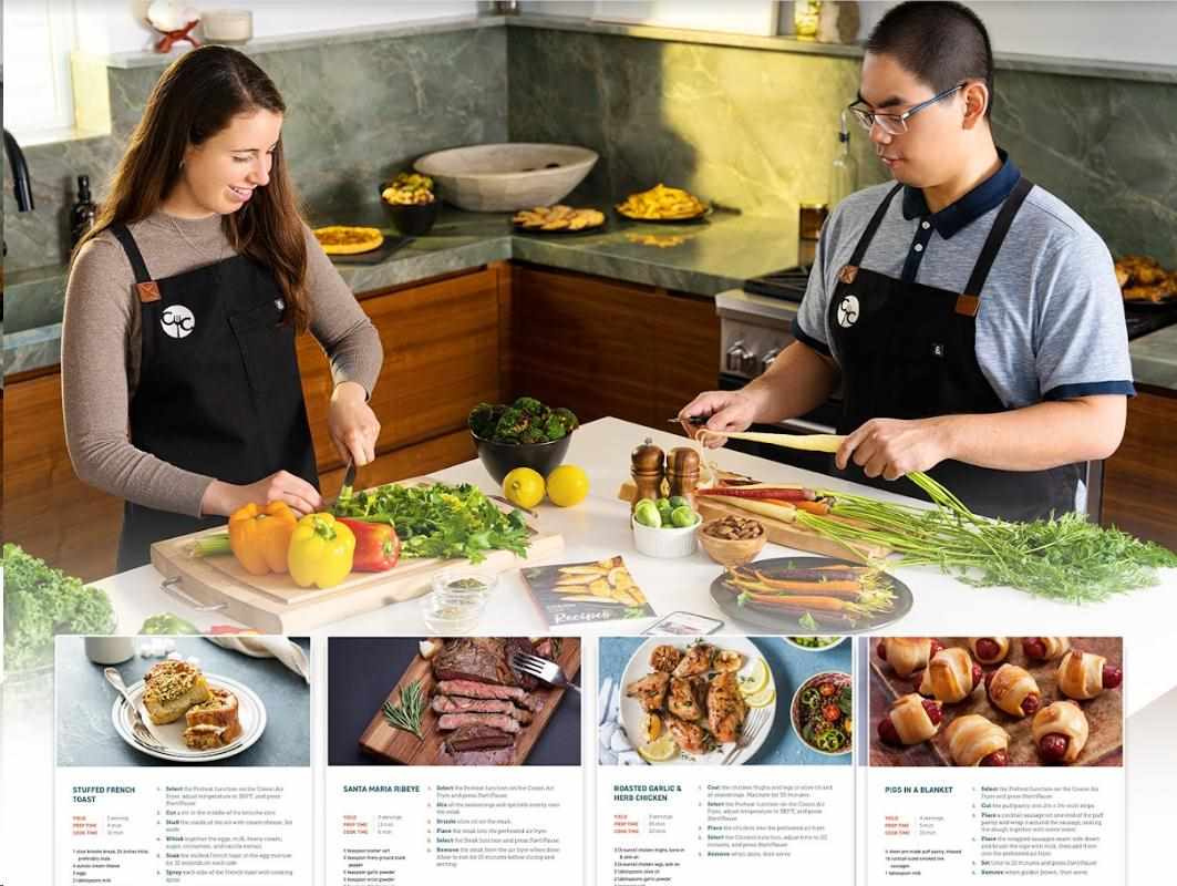 Pokud si vyberete naši multifunkční horkovzdušnou fritézu, dostanete k ní knihu s originálními, lahodnými a šikovnými recepty, které obohatí váš domácí jídelníček. Kniha je v anglickém jazyce. V češtině si ji můžete stáhnout.