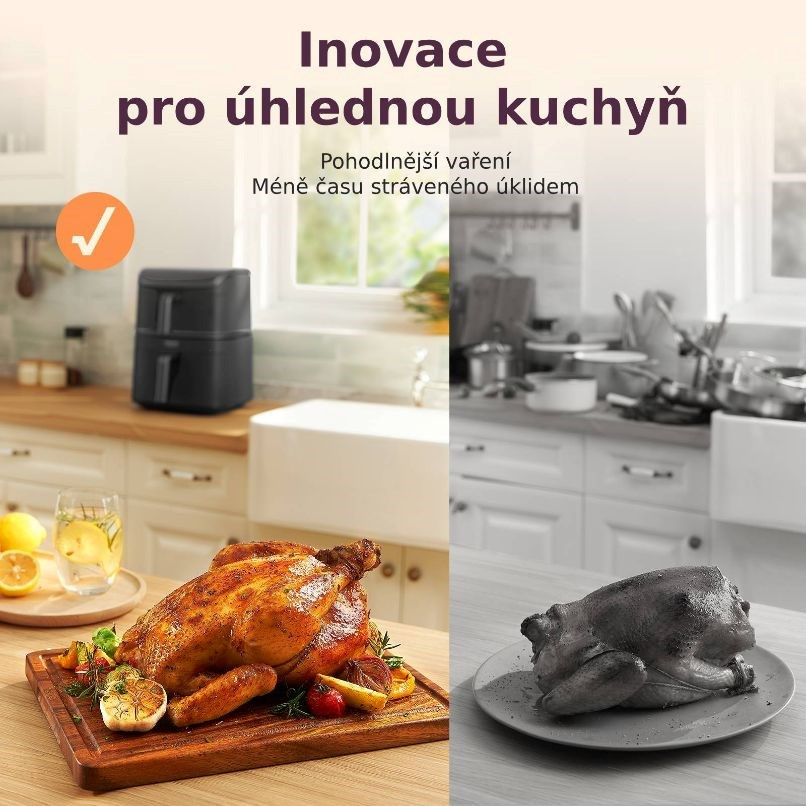 Díky pokročilým motorům a technologii Dual Blaze připravíte oblíbená jídla s použitím minima tuku, s až 65% úsporou nákladů a až 55% úsporou času. Koše a crisper talíře jsou navíc omývatelné v myčce! Nenechte se zbytečně zdržovat u plotny a dřezu. Využijte svůj čas smysluplně.