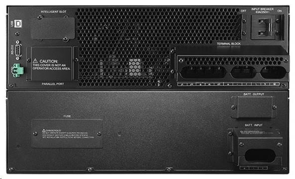 | Dodávka obsahuje | UPS + bateriový modul; kryt Vstup/Výstup Terninal bloku ; uživatelská příručka; telefonní kabel; PowerPanel®Business Edition software CD; USB kabel typ A+B; kolejnice pro uchycení v racku; konzola pro montáž do racku (2+2); spojovací plát (2); lyžiny (2+2); sériový kabel; napájecí kabel; montážní sada |