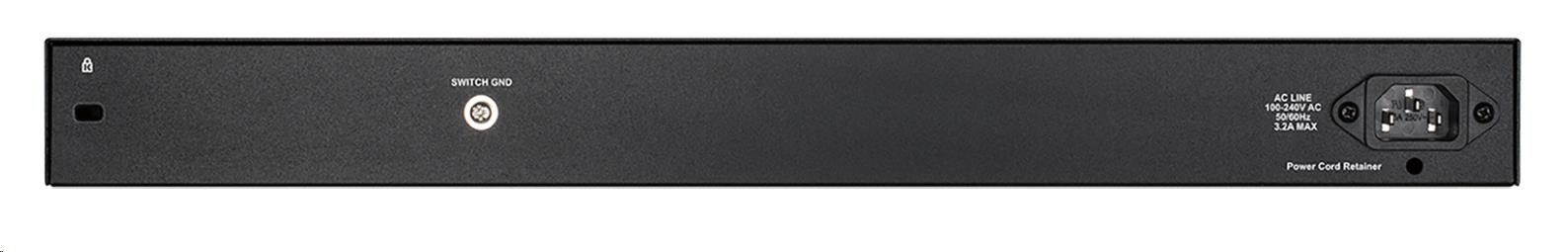 24 PoE 10/100/1000 Base-T port + 4 TP/SFP Combo Ports - 24 x 10/100/1000Mbps Auto-Negotiating Ports - 4x 1Gbps Combo TP Port/SFP Slot - Port 1-24 802.3at up to 30W - max PoE budget 193W - dlink|green 3.0, advance power saving features - 802.3az Energy Efficient Ethernet (EEE) port power save in idle mode - Jumbo frames up to 13000 bytes, 16K MAC-addresses - Half-/Full-Duplex, auto-negotiation, Auto MDI/MDIX - IEEE 802.3x Flow Control - 802.3ad Link Aggregation - Asymmetric VLAN, Auto Voice/Surveillance VLAN - Traffic Segmentation - 802.1p priority queues - MAC/IP filtering - MAC/IP-based ACL - 802.1X port-base Access Control, Port Security - D-Link Safeguard Engine - Static Routing and Default Route - IPv6 Ready - D-Link Network Assistant Utility (DNA) from firmware ver. 4.1, web based management, compact CLI - D-View 6.0 support, RMON - Fanless design - 19" Rackmount Installation - Firmware Release 7 not backwards compatible to Hardware Version D1/D2.