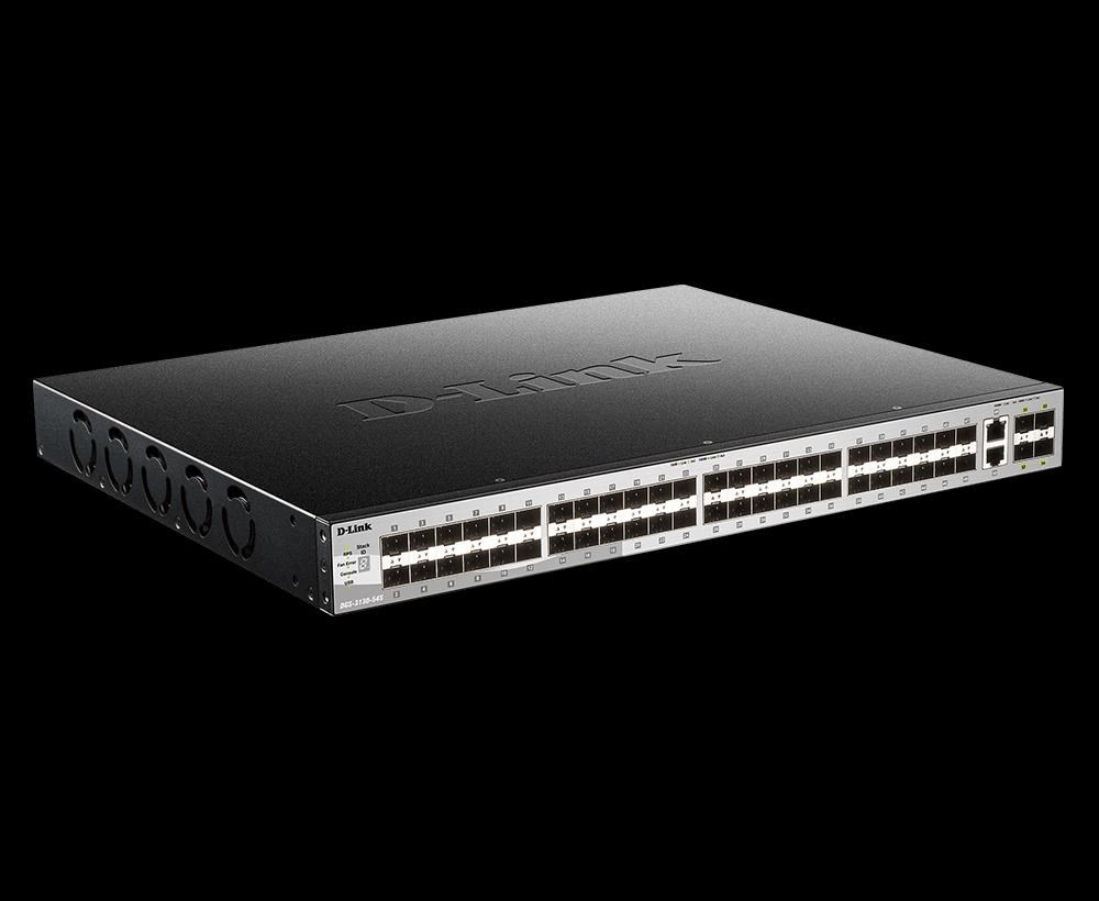 54-Port Lite Layer 3 Stackable Managed Gigabit Fiber Switch DGS-3130-54S Lite Layer 3 stackable managed switch for a secure enterprise or metro Ethernet access network. 48 x SFP ports 2 x 10GBASE-T and 4 x 10G SFP+ ports provide all the uplink capacity your network needs Premium L2 and L3 features effortlessly improve network efficiency and reduce unnecessary data transfer High redundancy features to provide professional-grade reliability and a longer product life: — Dual power inputs — Ethernet Ring Protection Switching with <50ms recovery time — 6 kV surge protection protects the device and those connected from unexpected surges — 802.1d/w/s Spanning Tree Protocol avoids potentially network crippling loops RIP/RIPng and OSFPv2/v3 dynamically maps out your network, aiding data to get to its destination via the fastest route possible. Expand capacity in a flash with physical stacking up to 9 units 80 Gbps per device physical stacking bandwidth The Smart Fan self-adjusts accordingly to maintain optimal operating temperatures.
