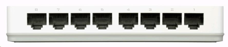 8-Port 10/100M Desktop Switch - IEEE 802.3 10BASE-T - IEEE 802.3u 100BASE-TX compliance - Support Auto-Negotiation for each port - Support Half/Full-Duplex operations at 10/100Mbps. - Support back pressure at Half-Duplex operation - IEEE 802.3x Flow Control support. - Auto MDI/MDIX- D-link Green - D-Link Green power saving Technology.