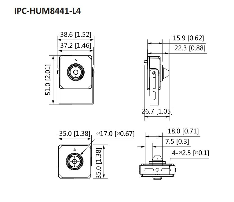 Dahua KIT/IPC-HUM8441-E1-L4-0280B, IP kamera, Pinhole, 4Mpx, 1/2.7" CMOS, objektiv 2,8 mm, PoE