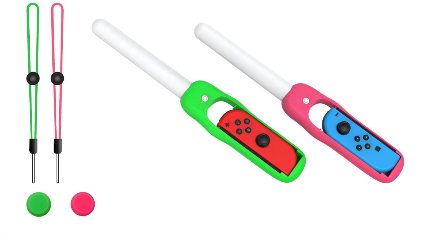 Dance ‘N’ Play Kit obsahuje 2x svíticí tyčinky LED citlivé na zvuk, s růžovým a zeleným úchytem a zápěstními řemínky. Svíticí tyčinky LED citlivé na zvuk s vícebarevným efektem duhového podsvícení budou fungovat, pulzovat, zářit a tančit podle jakéhokoliv zvuku. Ať už půjde o hudbu, nebo zvuky ze hry, Dance ‘N’ Play Kit prozáří váš pokoj.