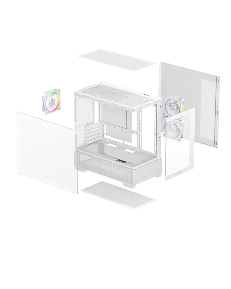DEEPCOOL Case CG380 3F WH, mATX, ARGB, Průhledná bočnice, 3x 120mm Fan, bílá