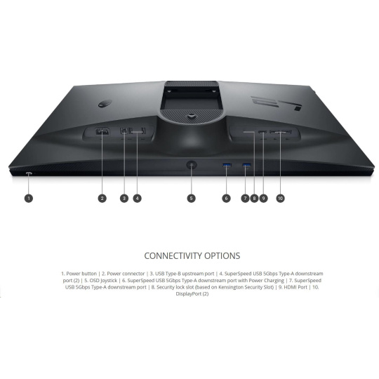 Features FPS Mode, RTS Mode, Mercury free, arsenic-free glass, Sports Mode, RPG Mode, Game Enhance Mode, Low Blue Light technology, Dell ComfortView Plus, flicker-free panel, console mode, 3 customizable game modes, AlienVision
