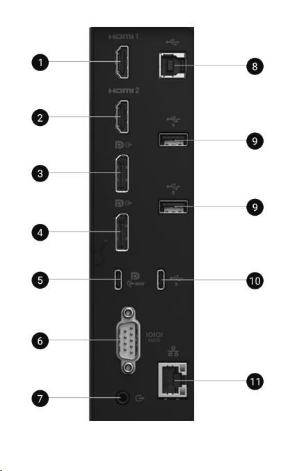 | HDMI 1 ? HDMI 2 ? DisplayPort (in) ? DisplayPort (out) ? USB 3.2 Gen1 Type-C upstream (Alt mode with DP 1.4, up to 90W PD) ? RS232 ? Audio line-out ? USB 3.2 Gen1 Type-B (5Gbps) upstream ? USB 3.2 Gen1 Type-A (5Gbps) downstream (2) ? USB 3.2 Gen1 Type-C (5Gbps) downstream (up to 15W PD) ? RJ45