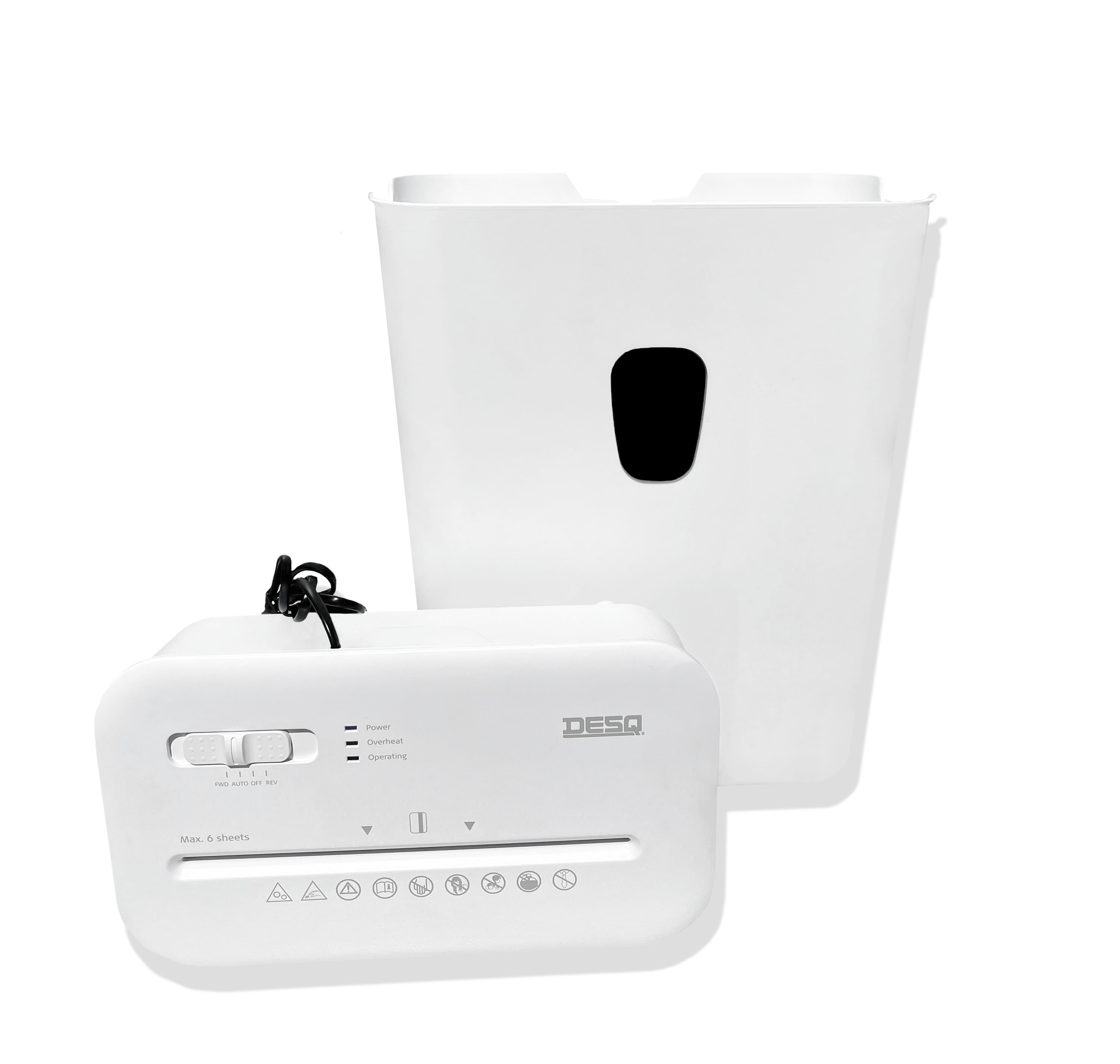 New Generation křížový skartovač papíru pro domácí a kancelářské použití, který zajistí bezpečnou likvidaci citlivých dokumentů. ? Skartuje papír (včetně spon) a platební karty ? Kapacita až 8 listů (A4, 70 g/m2) na jeden průchod ? Nepřetržitý provoz po dobu 5 minut ? Velká 15litrová nádoba se sledovacím okénkem – pojme až 80 listů skartovaného papíru A4 ? Úroveň zabezpečení P-4 – rozřeže jeden list A4 na 410 částic ? Hlučnost pod 65 dB – tichý provoz minimalizuje rušení při práci ? Indikátor přehřátí – chrání zařízení před přetížením ? Automatický start-stop a zpětný chod – pro snadné odstranění zaseknutého papíru ? Bezpečnostní funkce – zařízení pracuje pouze tehdy, pokud je nádoba správně umístěna ? Možnost použití bez odpadního sáčku Skartovač DESQ je uživatelsky přívětivý, bezpečný a vždy připravený k použití. Ideální pro ochranu důvěrných dat, aby se citlivé informace nedostaly do nesprávných rukou..