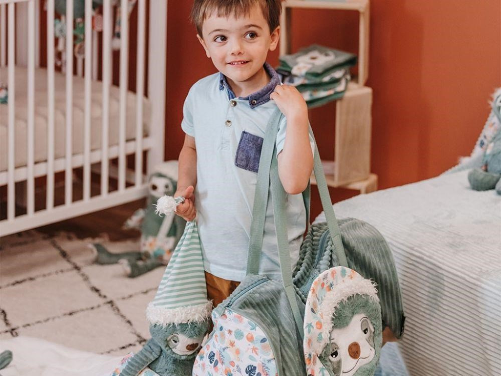 Originální cestovní taška nemusí být pouze dětskou cestovní taškou, své využití najde jako sportovní taška i jako roztomilá přebalovací taška. Látková taška z příjemného manšestru, v neutrální zelené barvě s lenochodem, pojme vše co vaše holčička nebo chlapec na víkend u babičky, na výlet nebo na dovolenou potřebuje. Prohlédněte si heboučkou tašku na hračky, oblečení, sportovní i přebalovací potřeby..