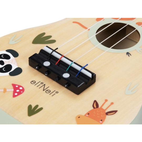 Kytara pro děti (ukulele) v barevné kombinaci přírodního dřeva a jemných pastelových barev, s roztomilým motivem - se zvířátky ze ZOO, promění v kytaristu každou holčičku i chlapce. Hudební nástroj v podobě dětské dřevěné kytary, kterou můžete i ladit, probudí v dětech lásku k hudbě, stimuluje smysly, rozvíjí dětskou fantazii a kreativitu..