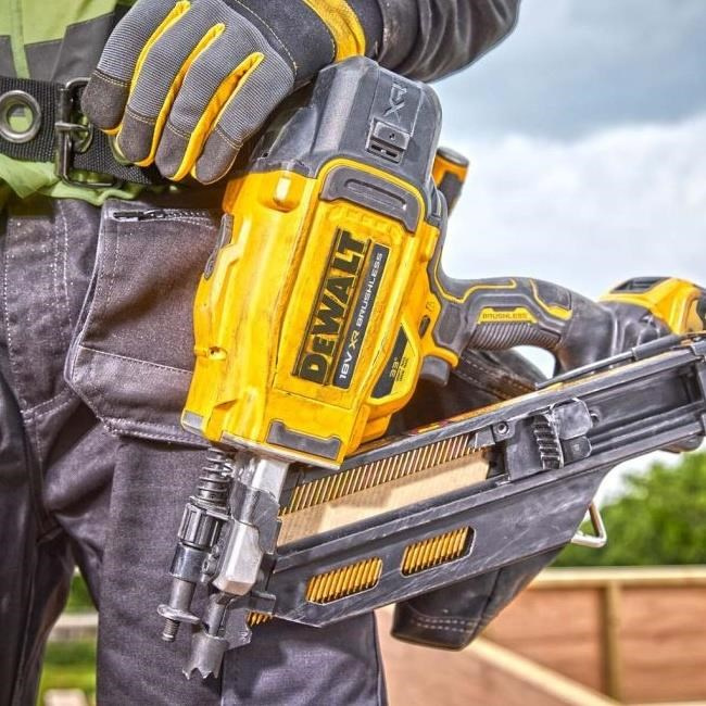 18V bezuhlíkový motor pro delší životnost, a větší účinnost a výkon, schopný zarážet hřebíky s kruhovou stopkou 90 mm do dřeva střední hustoty