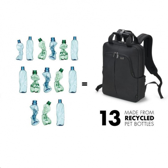 With the ECO Backpack Slim PRO you travel "1st class". The backpack reliably accompanies you wherever you go and meets the highest standards of quality, functionality and protection. Made from high-quality recycled PET, the Slim PRO Backpack protects our planet - ideal for the environmentally conscious consumer. The main material consists of 13 recycled PET bottles. DICOTA's attention to detail makes this bag your most reliable business partner.