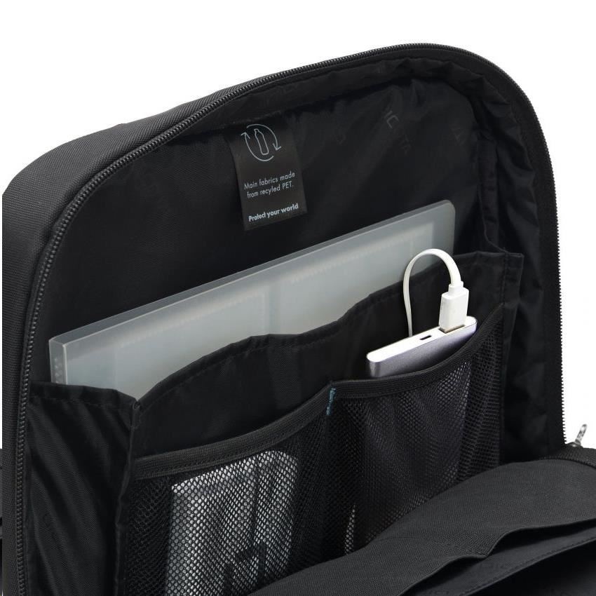 With the ECO Backpack Slim PRO you travel "1st class". The backpack reliably accompanies you wherever you go and meets the highest standards of quality, functionality and protection. Made from high-quality recycled PET, the Slim PRO Backpack protects our planet - ideal for the environmentally conscious consumer. The main material consists of 13 recycled PET bottles. DICOTA's attention to detail makes this bag your most reliable business partner.
