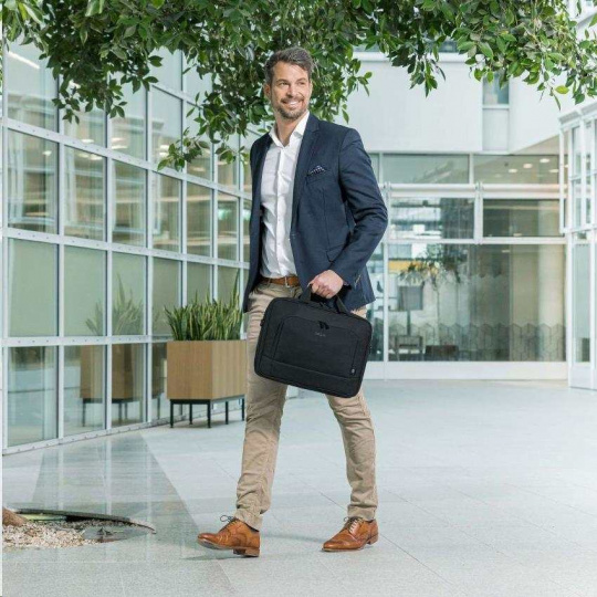 The compact Eco Traveller BASE case offers ideal protection for laptops between 15 and 15.6" thanks to its high-density foam (HDF) padding. The case guarantees extra stability and protection with its metal frame, as well as flexible mobility thanks to its lightweight design. There is an extra compartment in which you can easily store documents. Your smartphone or other smaller items like cables, pens or chargers can be stored in the convenient front pocket, so they are always to hand. The case is comfortable to carry thanks to its Neoprene padded carrying handle and it can be attached to a suitcase in seconds with its built-in strap. You can also carry the case using its adjustable shoulder strap. The Eco Traveller BASE is therefore perfect for you if you are always on the go and want to support the recycling of PET bottles with an eco-friendly case.