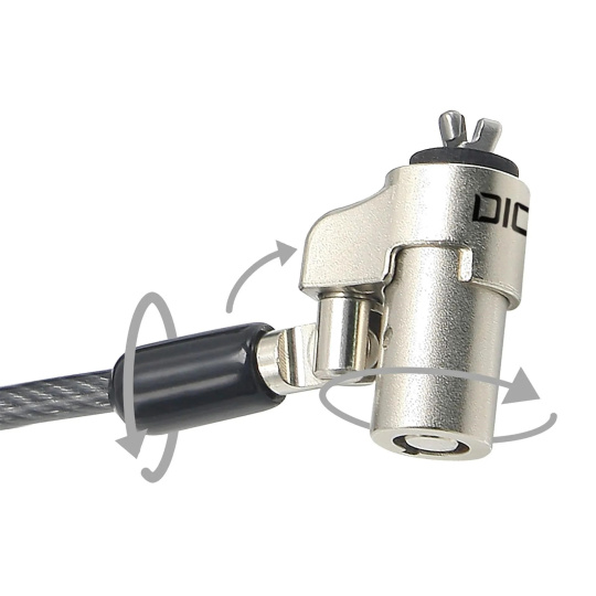 Notebooky jsou stále tenčí a přitom všestrannější. Lehký a obzvláště elegantní ultra tenký bezpečnostní kabelový zámek spolehlivě ochrání vaše zařízení, aniž by mu přidával zbytečný objem. Také projektory, monitory a tiskárny lze účinně zabezpečit pomocí zámkových systémů DICOTA. V současné době používají výrobci zařízení tři různé formáty zámkových slotů. Zámek Security Cable Wedge Lock Ultra Slim je vhodný pro všechny modely se slotem 3,2 x 4,5 mm a je kompatibilní s tenkým bezpečnostním slotem Noble Wedge*. Gumový nárazník zabraňuje poškrábání zařízení a zároveň zajišťuje bezproblémové uchycení. Díky otočné a výkyvné a zavírací hlavě s možností otáčení válce o 360° si užijete maximální flexibilitu při navrhování pracovního místa. Vícežilové ocelové lanko s pláštěm je dlouhé 2 m a má průměr 4,4 mm. Funkční pásek na suchý zip umožňuje srolovat kabel pro kompaktní skladování a přepravu. Součástí dodávky jsou dva klíče. Tento zámek je v samostatném provedení a nelze jej integrovat do většího uzamykacího systému. Nobel Wedge™ je ochranná známka třetí strany bez vazby na společnost DICOTA SCHWEIZ AG.