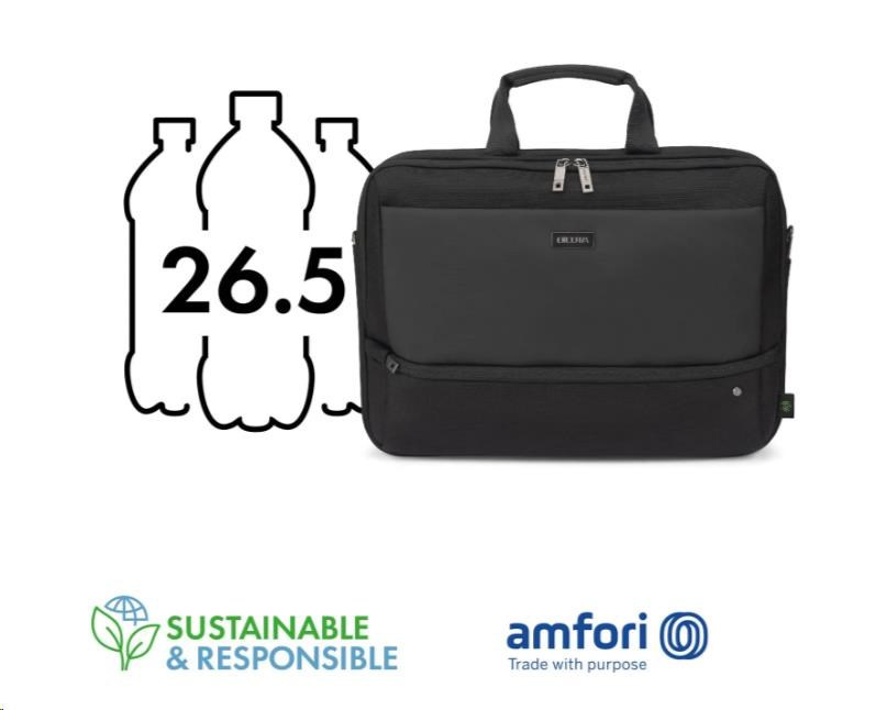 Brašna Top Traveller FIVE je navržena tak, aby chránila vaše zařízení a zároveň vám umožňovala snadný přístup k nezbytnostem. Uzamykatelná přihrádka na notebook s ochranou DCT Notebook Protection a polstrováním rohů z HDF pěny a EVA zajišťuje maximální bezpečnost, zatímco integrovaná kapsa poskytuje bezpečné uložení tabletů do velikosti 12,9". Hlavní přihrádka nabízí dostatek prostoru pro dokumenty, složky nebo mobilní vybavení a přední část obsahuje uspořádané kapsy na příslušenství. Malá přední kapsa poskytuje další úložný prostor pro kabely a menší předměty. Vyrobeno z 26,5" recyklovaných PET lahví.