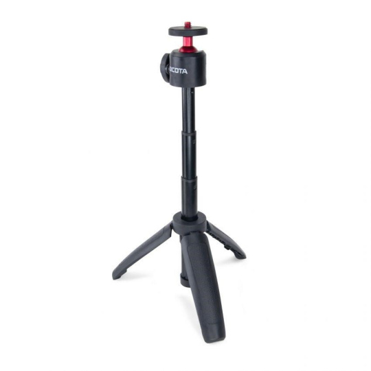 Ve složeném stavu je stojan webové kamery vysoký 147 mm. Pokud jej takto postavíte, můžete jej použít jako stolní stojan nebo jako krátkou rukojeť. Je vybaven výsuvným středovým sloupkem, který umožňuje maximální výšku 245 mm. Díky integrované naklápěcí a otočné kulové hlavě je robustní a flexibilní.