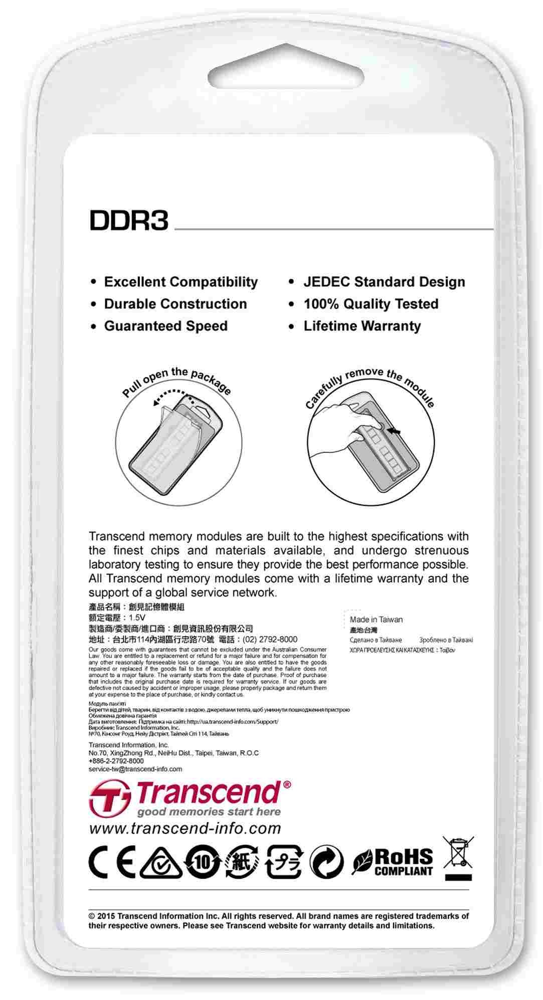 Offering the best combination of reliability, speed and stability, Transcend's DDR3 DIMMs are built with the highest quality brand-name DRAM chips available, and are rigorously tested to ensure they meet Transcend's stringent requirements for overall quality and performance. Transcend DDR3 unbuffered DIMMs are the most stable and reliable in the industry, which also makes them an economical memory solution for all desktops.