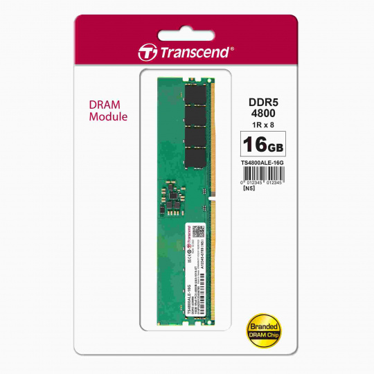 TRANSCEND DIMM DDR5 16GB 4800MHz 1Rx8 2Gx8 CL40 1.1V