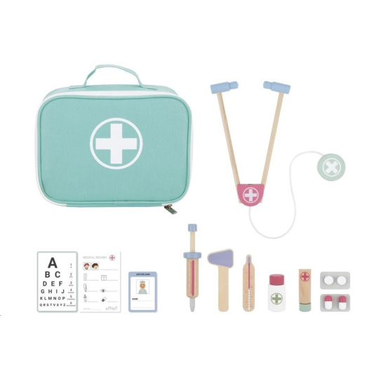 Doktorské vybavení v praktické brašně umožní dětem vyšetřovat pacienty v podobě plyšových hraček, panenek, kamarádů nebo rodičů, stanovit diagnózu a zahájit léčbu. Součástí dětského doktorského setu je základní lékařské vybavení včetně oční tabulky pro vyšetření zraku.