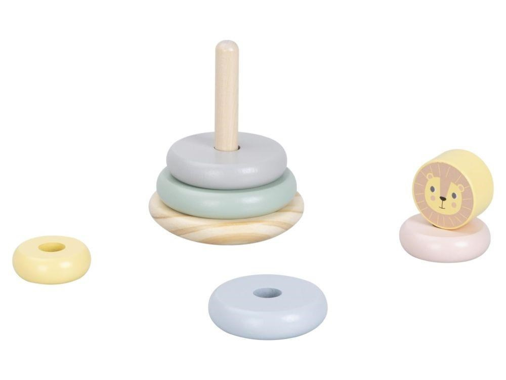 Skládací věž (pyramida) je oblíbenou dřevěnou hračkou, která nesmí chybět v žádném dětském království. Skládací věž s kroužky v jemných pastelových barvách a lvíčkem zdokonaluje jemnou motoriku, koordinaci očí a rukou, logické myšlení, učí děti poznat rozdíl mezi větší a menší, soustředit se a trpělivosti..