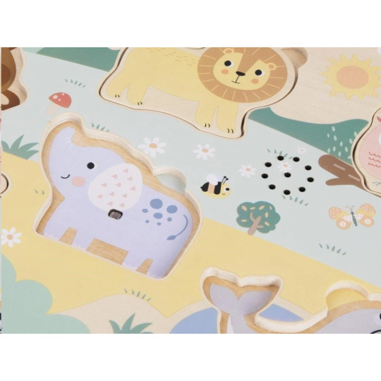 Dřevěné vkládací puzzle se zvuky - zvířátka v ZOO