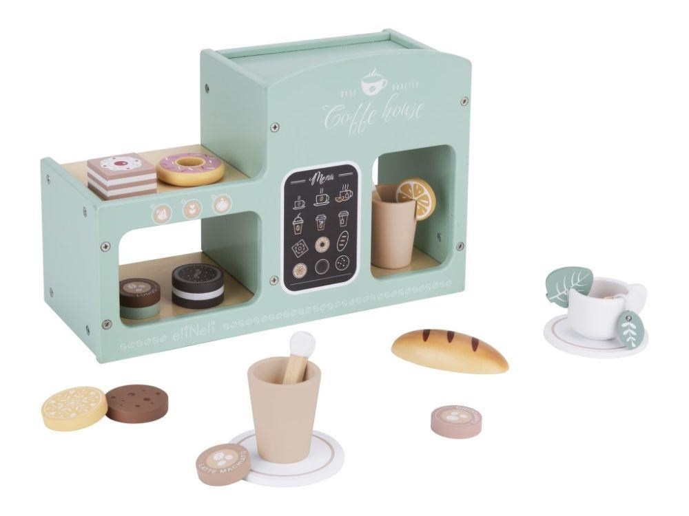 Velký kávovar pro děti je dřevěnou hračkou 2v1 - parádním kávovarem i obchůdkem s těmi největšími dobrotami. Kávovar s obchodem, doplněný bohatým příslušenstvím, nabízí nespočet možností ke hře a zabaví nejen vaše dítko, ale i jeho kamarády, celou rodinu..