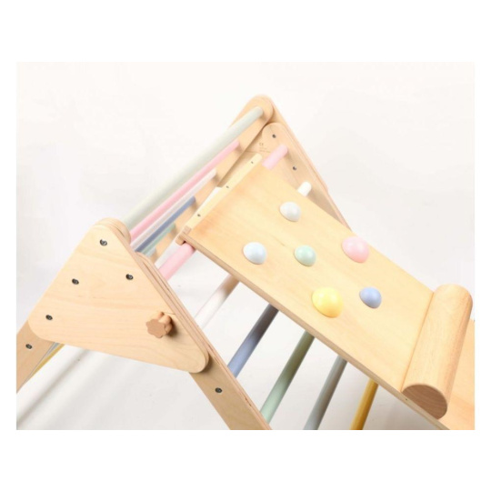 Dřevěný Piklerové trojúhelník set s montessori prknem - pastelový