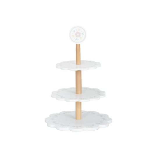 Dřevěný patrový stojan s lahodně vypadajícími dřevěnými zákusky a cukrovinkami je jako stvořený pro oslavy a čajové dýchánky uspořádané pro rodiče, kamarády i oblíbené plyšáky. Dřevěný stojan s bohatým příslušenstvím je skvělým doplňkem do dětské kuchyňky i obchůdku. Děti si mohou zahrát na cukráře i prodavače, rozvíjet svou fantazii a zdokonalovat dovednosti..