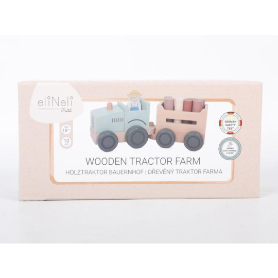 Parádní dřevěný traktor v jemné zelenkavé barvě, s traktoristou, vlečkou a nákladem v podobě klád (dřevěný válečků), promění děti ve skutečné farmáře. S tímto dřevěným traktorem se děti vydají do lesa na dříví, mohou převážet zvířátka z farmy a jakékoliv jiné hračky, kostky, co se jim podaří na vlečku naložit. Při hře s traktůrkem děti hrají role, zdokonalují motorické dovednosti a koordinaci očí a rukou..
