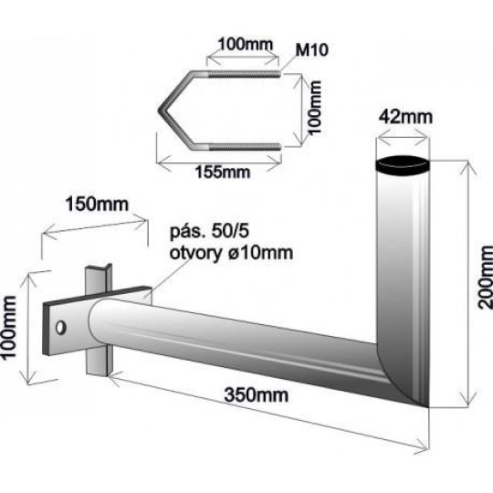 Držák antény na stožár s vinklem, délka 35cm