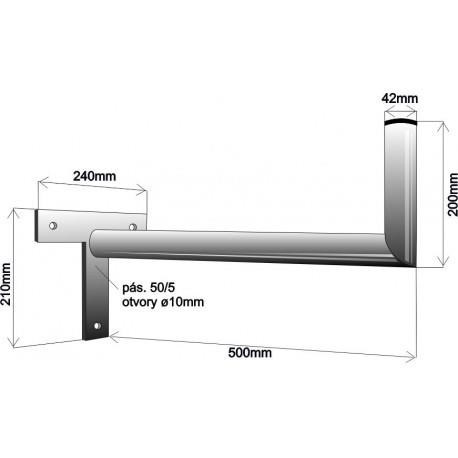 Držák antény na zeď, tvar T, žárový zinek, délka 50cm