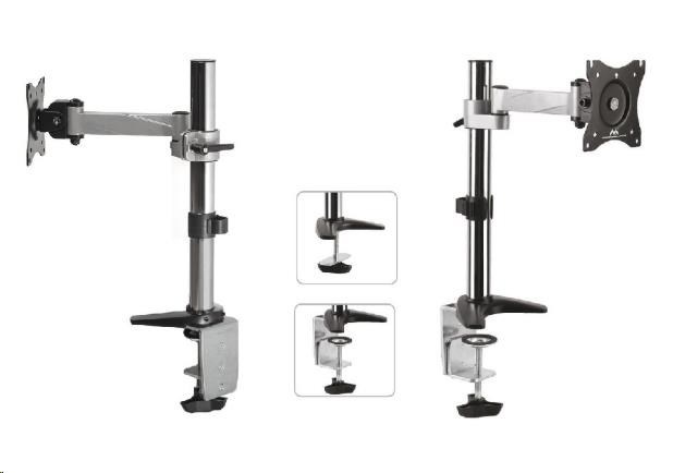 Držák monitoru na stůl Fiber Mounts MC717 Stolní držák na monitor 15÷30", otočný, sklopný, výškové nastavení, funkce pivot Velmi pěkný, kvalitní a hlavně cenově dostupný stolní držák pro zavěšení monitorů s úhlopříčkou 15÷30 palců. Plná nastavitelnost polohy obrazovky - otáčení do stran, náklon, výšková regulace, horizontální nebo vertikální otočení obrazovky, korekce roviny. Stolní držák MC717 podporuje VESA standard 75x75 a 100x100, doporučené maximální zatížení je 8kg. Součástí balení je montážní materiál a 2 typy uchycení na stolovou desku - na krajní hranu stolu nebo skrz stolovou desku kdekoliv do prostoru. Držák je výborné kvality a opravdu pěkného designu. Držák na monitor do kanceláře, domácnosti, firmy nebo do škol -Fiber Mounts MC717 - otočný, sklopný, výškově nastavitelný, funkce pivot, TOP kvalita, design, vynikající cena za stolní držák Technické údaje: nosnost 8kg podpora VESA standardu 75x75 a 100x100 doporučujeme na monitor s úhlopříčkou 15" až 30" otáčení do stran +180° / -180° náklon +35° / -35° horizontální nebo vertikální otočení obrazovky monitoru - funkce pivot korekce roviny maximální odsazení monitoru od nosníku 246mm 2 typy uchycení na stůl - na kraj stolu / skrz stůl kdekoli do prostoru minimální síla stolové desky 10mm maximální síla stolové desky 85mm průměr nosníku 35mm výška nosníku od stolové desky 400mm nastavitelná výška ramene vynikající kvalita snadné nastavení pozice obrazovky monitoru materiál hliník barva stříbrná + chrom záruka 3 roky.