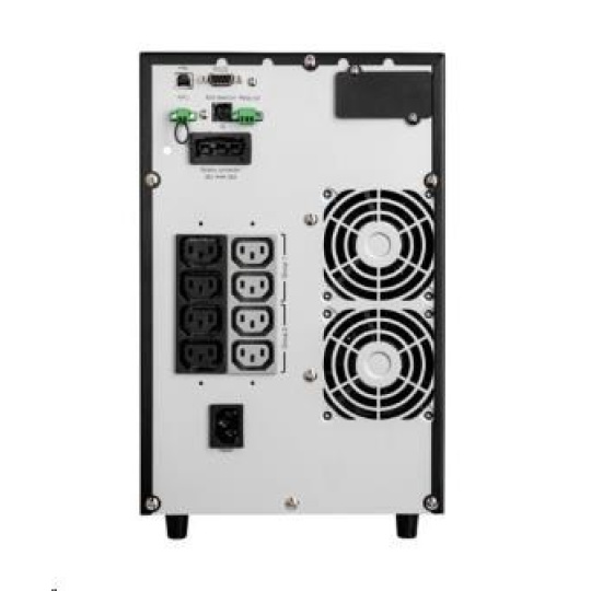 | Komunikace | USB port (kompatibilní s HID) Sériový port (RS232) Mini-svorkovnice pro vzdálené vypnutí napájení (RPO) Mini svorkovnice pro výstupní relé Bezpotenciálové kontakty (2 výstupy, 1 vstup, optočlen, DB9) |