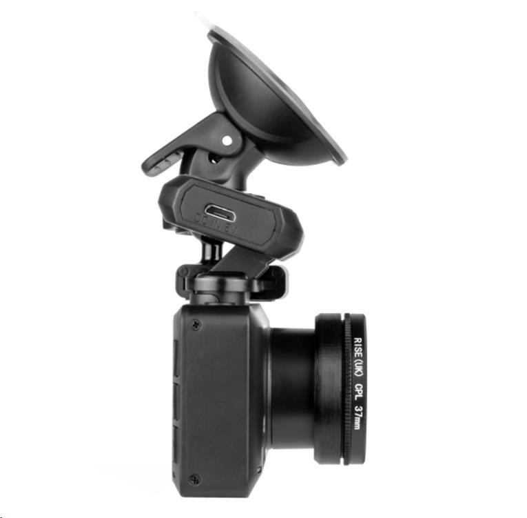 Přísavný držák kamery je koncipován tak, aby bylo možno kameru pohodlně umístit i na kolmé sklo, například autobusů nebo nákladních vozidel. Díky kloubu držáku je možno kameru nastavit ve třech osách pro přesné zacílení záběru. Proto je možné kameru umístit i mimo pozici za zpětným zrcátkem, kde by pro řidiče nebyl dostupný display zobrazující rychlost z GPS a další údaje.