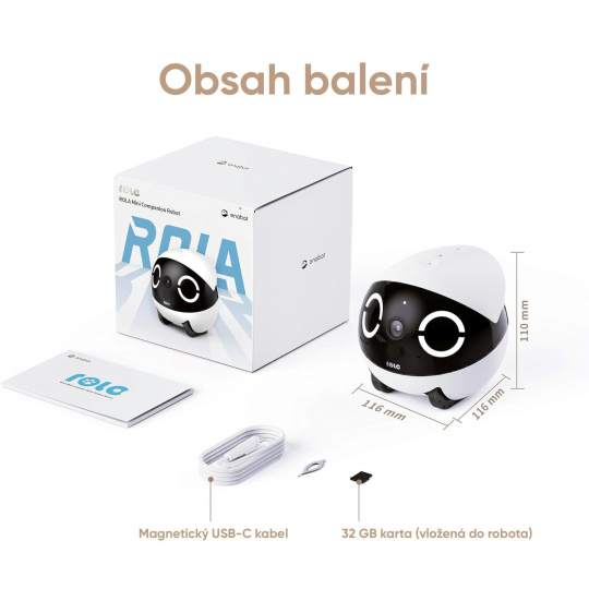 Enabot ROLA Mini je hravý robot s kamerou, který promění běžné chvíle doma ve zábavné a dojemné okamžiky. Díky dálkovému ovládání přes aplikaci se můžete se svým mazlíčkem spojit kdykoli, i když nejste doma – vidět ho, mluvit na něj a sledovat jeho reakce v reálném čase. Robot se pohybuje na pogumovaných pásech, zvládá jízdu po různých površích a po každém převrácení se sám vrátí zpět na kola. ROLA Mini je víc než jen hračka – je to malý člen rodiny, který přináší interaktivní zábavu, spojení a klid.