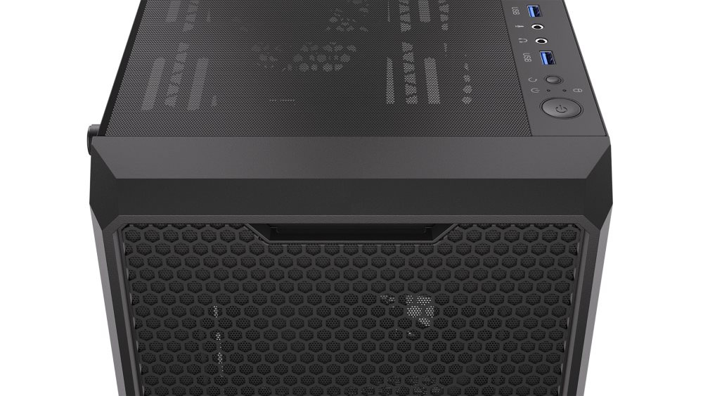 Skříň formátu Middle Tower s průhlednou bočnicí z tvrzeného skla nabízí dvě 2,5" pozice pro SSD disky a dvě 3,5" pozice pro pevné disky. Na horní části se nachází dva USB 3.0 porty, sluchátkový výstup a audio vstup pro mikrofon. Vybavena je čtyřmi 120 mm ventilátory, které spolu s perforovaným čelním panelem zajišťují dostatečné proudění vzduchu. Ve skříni je dostatek prostoru pro chladič CPU do výšky až 162 mm a grafickou kartu o délce až 370 mm. Dodávána je bez zdroje. Součástí je také sada prachových filtrů.