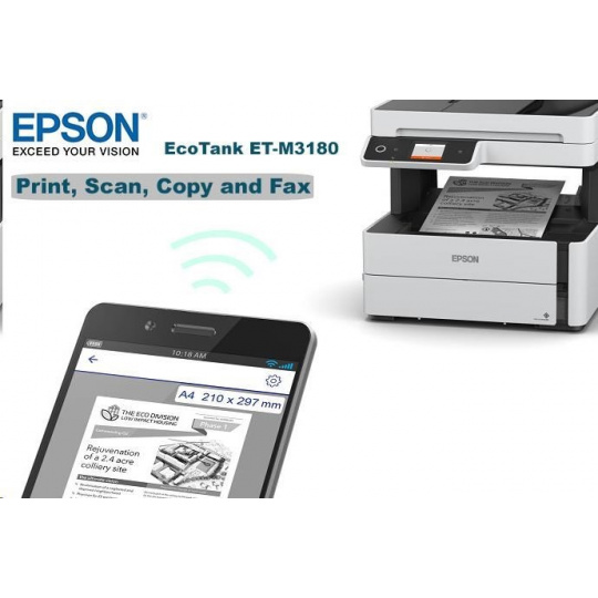 EPSON tiskárna ink EcoTank Mono M3180, 4v1, A4, 39ppm, Ethernet, Wi-Fi, Duplex, LCD, ADF,Záruka 5 let po registraci