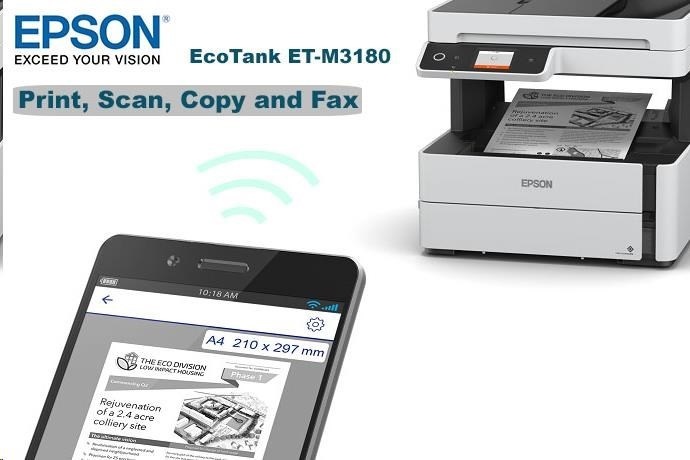 EPSON tiskárna ink EcoTank Mono M3180, 4v1, A4, 39ppm, Ethernet, Wi-Fi, Duplex, LCD, ADF,Záruka 5 let po registraci