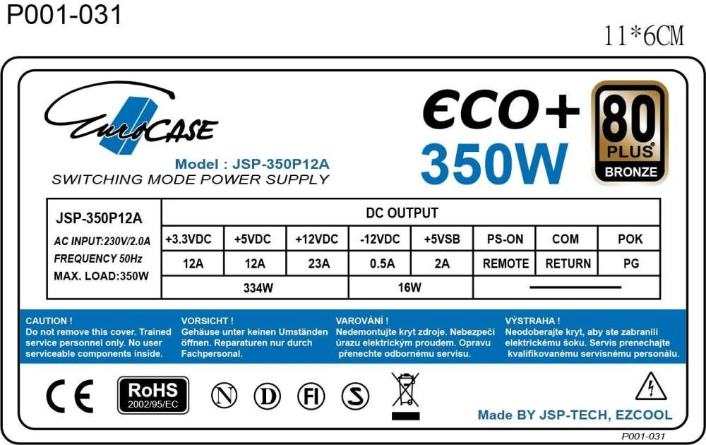 EUROCASE zdroj 350W Eco+, 120mm, 80+ Bronze, ATX