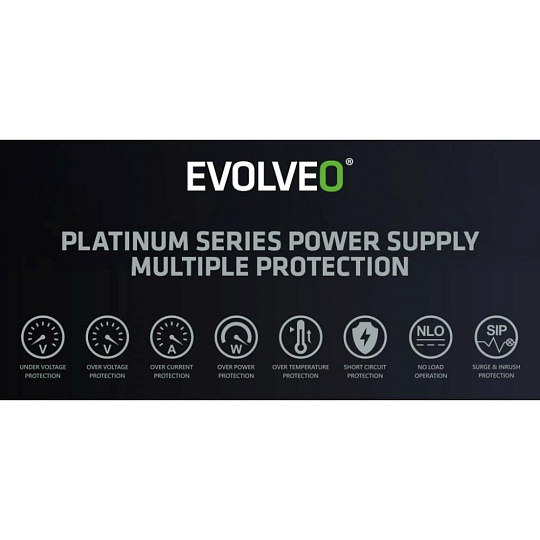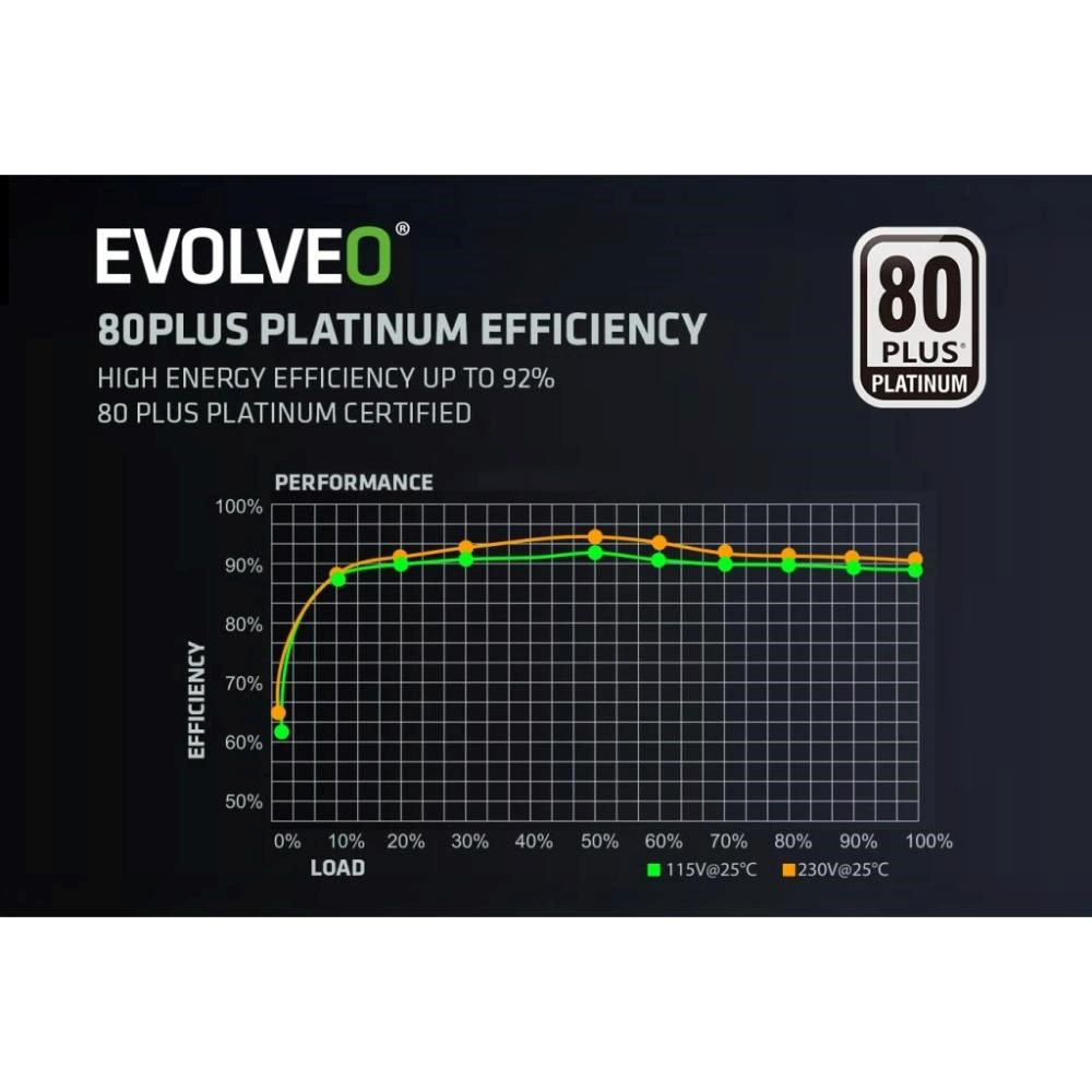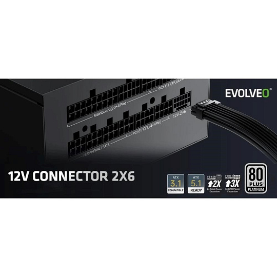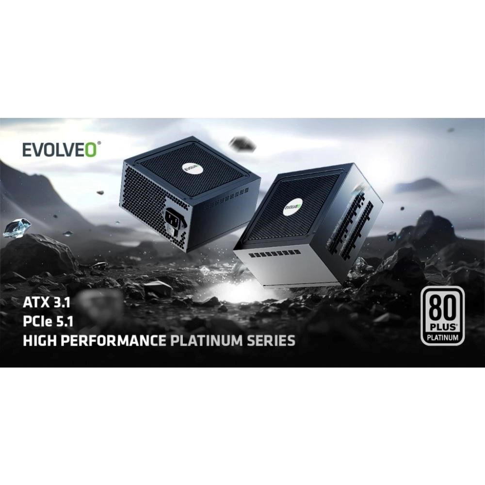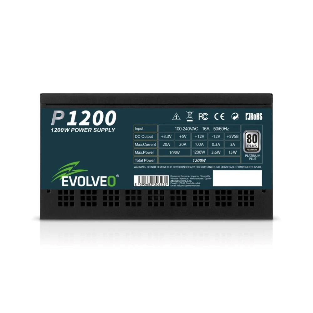 EVOLVEO P1200 zdroj 1200W, 80+ PLATINUM, ATX 3.1, aPFC, 140 mm ventilátor, 3 roky záruka, černý
