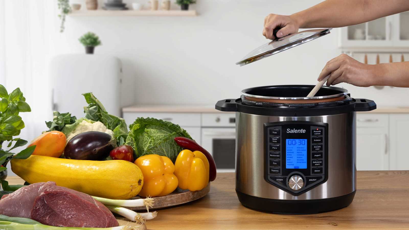 - Ario II má plynulou volbu teploty pro tlakové vaření, sous-vide, restování a pomalé vaření