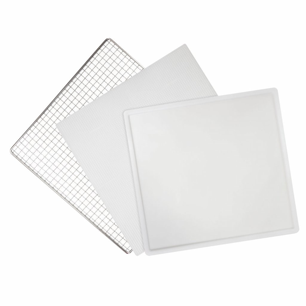 Výbavou navíc je u tohoto modelu sada deseti sušících plat s jemným síťováním pro sušení jemnějších a lepkavých surovin (např. hub, bylinek, banánů, rajčat atp.). Dodáván je i odkapávací tác na dno sušičky, který zachycuje přebytečné šťávy z některých surovin a výrazně tak usnadňuje čištění nerezového interiéru sušičky. Plata i tác mají rozměr 39,4 × 39,4 cm.