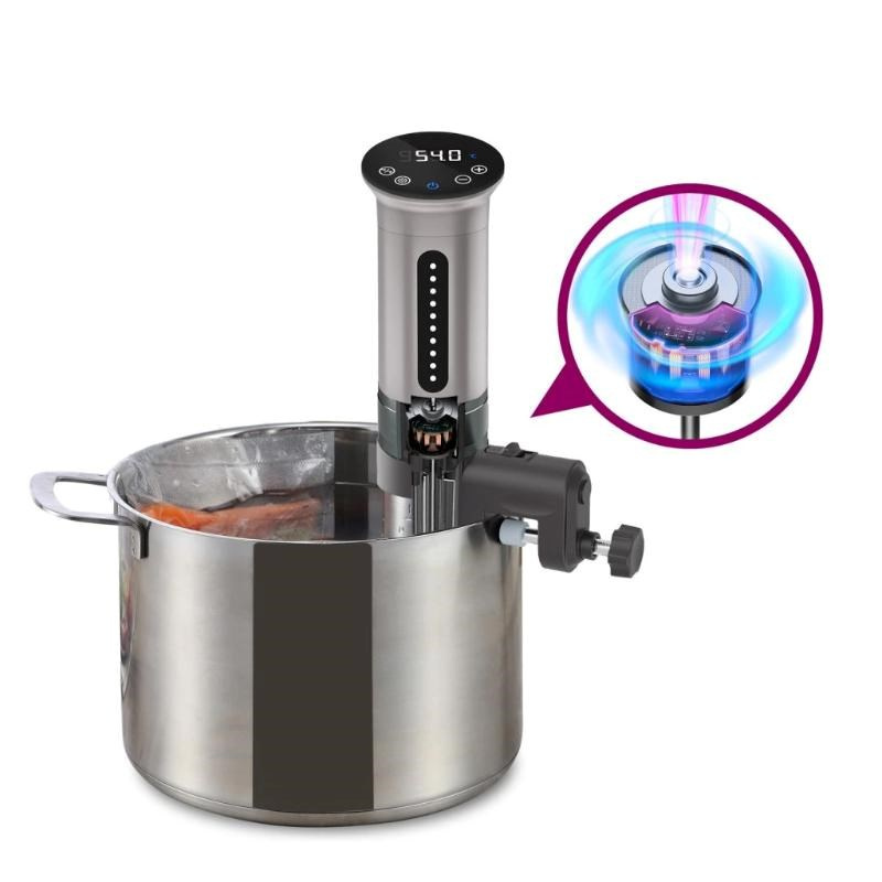 Rovnoměrné prohřátí lázně na nastavenou teplotu pomáhá zajistit špičkový DC motor. Průtok dosahuje hodnoty 20 litrů za minutu, což je dvojnásobně větší hodnota ve srovnání s konkurencí. Další výhodou DC motoru u Sous Vide vařiče Salente SuChef je tichý chod, který je na hranici slyšitelnosti.