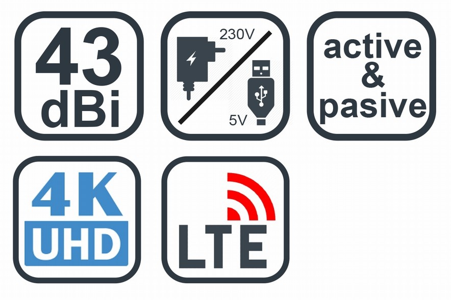 • zisk: 43 dBi