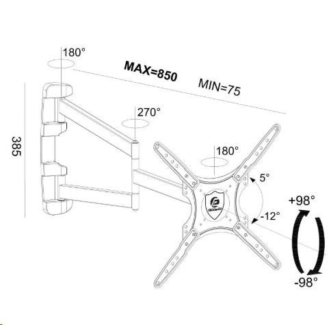 Extra dlouhý držák Tv ErgoSolid Longo85 Otočný, sklopný, délkově nastavitelný držák na Tv 26-60", funkce pivot, nosnost 30kg Nejdelší držák Tv nebo monitoru na trhu za dostupnou cenu! Potřebujete otočit televizi s úhlopříčkou 60" kolmo ke zdi? V tom případě potřebujete opravdu dlouhý držák s délkou minimálně 75cm. My vám nabízíme držák s délkou až 85cm za cenu držáků s délkou 65cm - ErgoSolid Longo85. Tento vynikající držák má unikátní konstrukci, která umožňuje délkové nastavení 75mm až 850mm. Díky tomu otočíte kolmo ke zdi i televizory s úhlopříčkou 60". Držák umožňuje i náklon obrazovky v rozmezí +5° až -12° a podporuje VESA standardy 75x75 až 400x400. Zvládne zatížení až 30kg i při maximálním vysunutí. Navíc tento držák má i funkci PIVOT - možnost otočení obrazovky z horizontální do vertikální polohy. Nejdelší držák na televize a monitory za skvělou cenu - ErgoSolid Longo85 Technické údaje: nosnost 30kg podpora VESA standardu 75x75 až 400x400 vhodný na televize i monitory s úhlopříčkou 26" až 60" nastavitelná vzdálenost od zdi v unikátním rozsahu minimální vzdálenost 75mm maximální vzdálenost 850mm možnost náklonu obrazovky v rozsahu +5° až -12° funkce PIVOT - možnost otočení Tv z horizontální polohy do vertikální korekce roviny obrazovky i po montáži konstrukce špičkové kvality materiál ocel, výborné zpracování instalační materiál součástí balení barevné provedení černé záruka 3 roky Nejdelší držák na televizi, otočení televize kolmo ke zdi, funkce pivot, TOP kvalita - Ergosolid Longo85 Velmi dlouhý držák na televizi monitor, délka 75mm až 850mm, nosnost 30kg, na televize 26 až 60 palců - ErgoSolid Longo85 Nejdelší držák Tv ErgoSolid Longo85 podporuje VESA standardy: VESA 75x75 VESA 100x100 VESA 200x100 a 100x200 (u VESA 100x200 není možné využít funkci PIVOT) VESA 200x200 VESA 300x300 VESA 400x400.