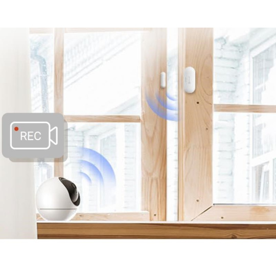 Integrujte senzor T2C s kamerami EZVIZ, a zajistěte tak lepší ochranu – vše prostřednictvím aplikace EZVIZ. Propojenou kameru můžete nastavit tak, aby spustila automatické nahrávání po dobu 5 sekund, kdykoli se otevřou dveře.