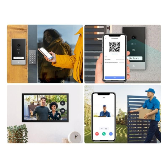 Ezviz TP7 je moderní sada pro inteligentní vstup do domu, která zahrnuje chytrý dveřní telefon, jednoduchou klávesnici a pokročilý dotykový monitor. Toto zařízení umožňuje bezklíčový vstup a vzdálenou správu přístupu pro různé návštěvníky. Nabízí řadu užitečných funkcí: