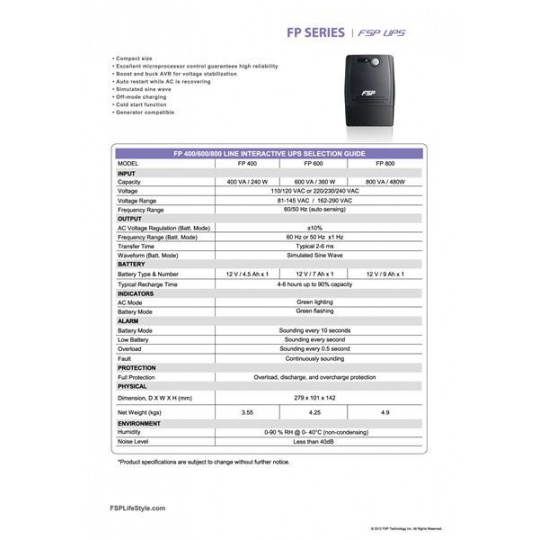 Fortron UPS FSP FP 600, 600 VA, line interactive